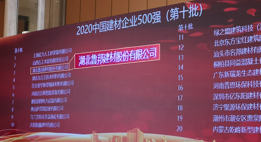 湖北魯邦建材股份有限公司榮獲“中國建材企業(yè)500強(qiáng)”稱號。